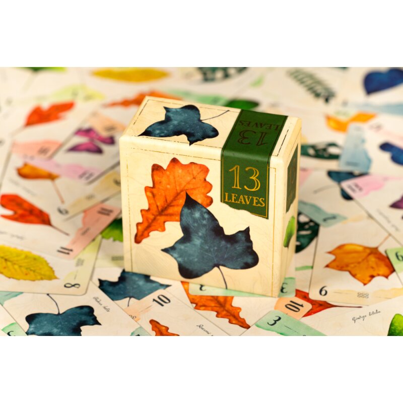 Der Herbst hat begonnen, und mit ihm kommt das große Rascheln im Laub! In 13 Leaves liefern sich die Spieler einen packenden Wettstreit darum, wer als Erster alle Blätter abgelegt hat. Doch Vorsicht: Jedes abgelegte Blatt kann den Mitspielern neue Möglichkeiten eröffnen. Nutzt die richtige Zahl zur richtigen Zeit – und passt auf, wann es besser ist, zu passen!