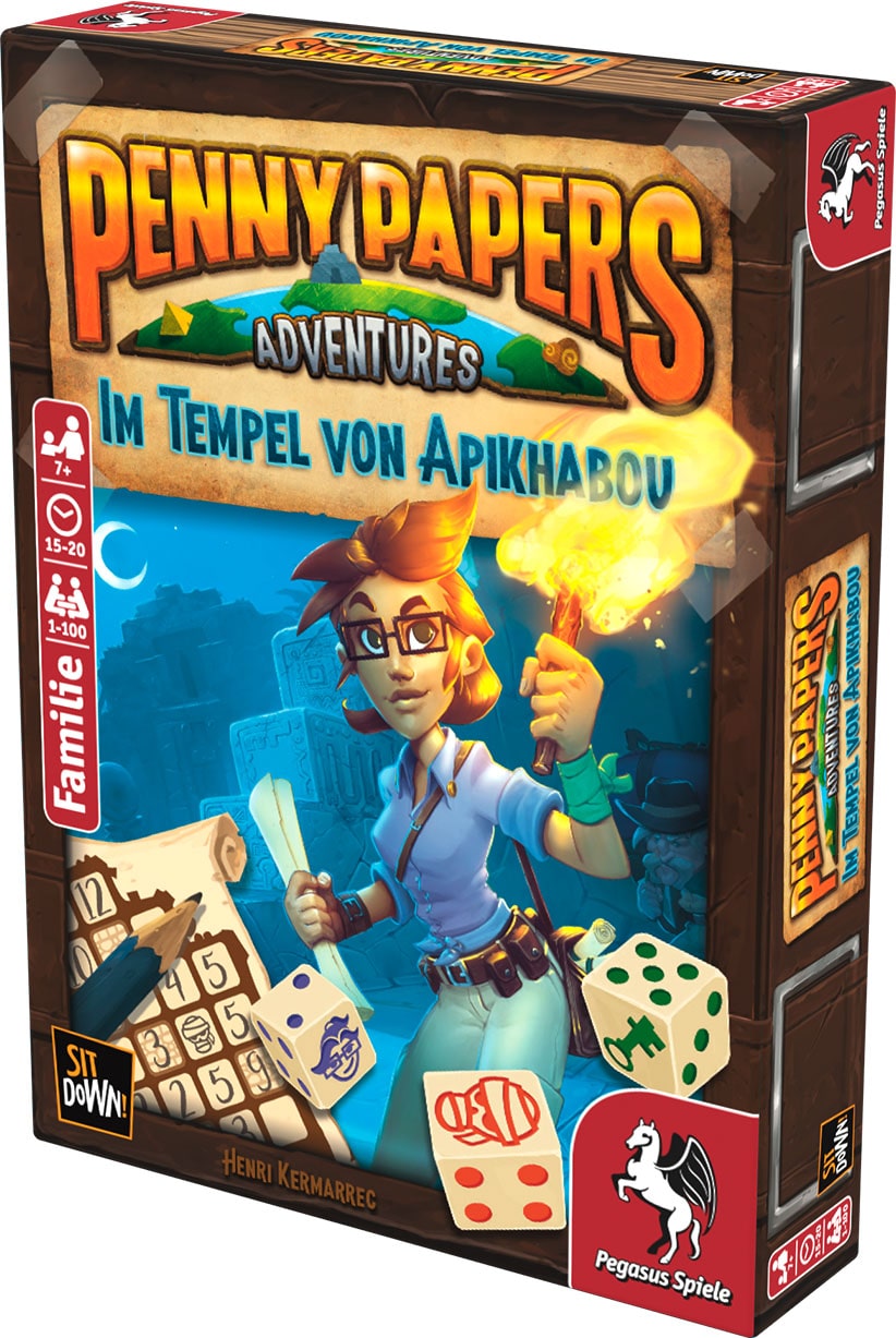 Penny Papers Adventures sind eine Reihe von kleinen Strategiespielen, in denen alle Spielenden das gleiche Ergebnis von drei Würfeln verwenden, um einen Ort besser zu erforschen als die Mitspielenden. Dazu schreiben sie Zahlen in ihr Raster, die ihnen schließlich Siegpunkte bringen. Die Spielenden müssen ihre Fähigkeiten herausfordern, indem sie den verfügbaren Platz verwalten und die Spezialeffekte der Würfel klug einsetzen. Dabei sollten sie keine Gelegenheit verpassen, die Raster der Gegner zu verwirren, wenn Gefahren auftauchen. Die Anzahl der Spielenden ist unbegrenzt, da alle gleichzeitig spielen. Die Abenteuer von Forscherin Penny Papers beginnen mit dem Familienspiel Im Tempel von Apikhabou und werden mit den etwas anspruchsvolleren Kennertiteln Die Totenkopfinsel und Im Tal des Wiraqucha fortgesetzt.