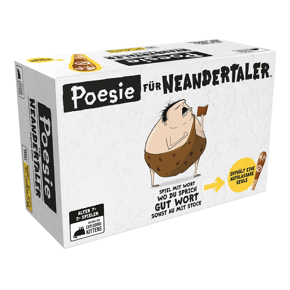 Im Partyspiel Poesie für Neandertaler werden die Spieler zu Neandertalern, die muntere Verse rezitieren möchten, doch das gestaltet sich schwierig: Neandertaler kennen keine Wörter, die mehr als eine Silbe haben!