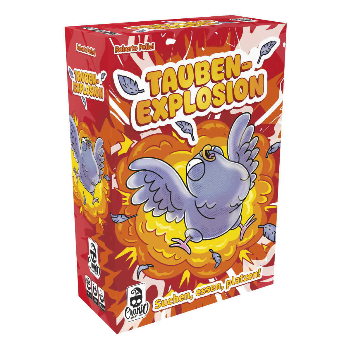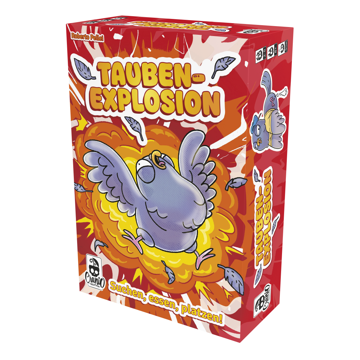 In Taubenexplosion füttert ihr exzentrische Stadttauben mit Futterkarten, bis sie entweder glücklich sind – oder explodieren. Doch Vorsicht: Eure Mitspieler sabotieren mit Aktionskarten eure Pläne oder lassen eure Tauben mit überraschenden Effekten hochgehen. Wer als Erstes genügend glückliche Tauben sammelt oder als Letzter übrig bleibt, gewinnt dieses herrlich gemeine Familienspiel voller Chaos, Timing und Schadenfreude.